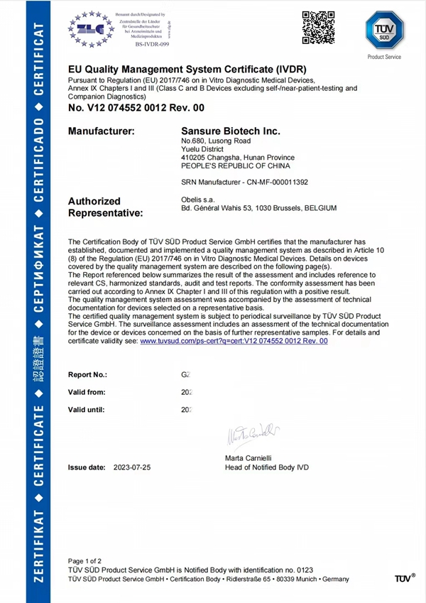 此次kaiyun开云生物HPV13+2核酸检测试剂获得CE IVDR认证,是公司产品性能及国际化质量体系升级的重要成果,奠定了公司在欧盟市场的先发竞争优势,扩展了公司产品的市场覆盖范围,为进一步拓展海外客户群提供了强有力支持。